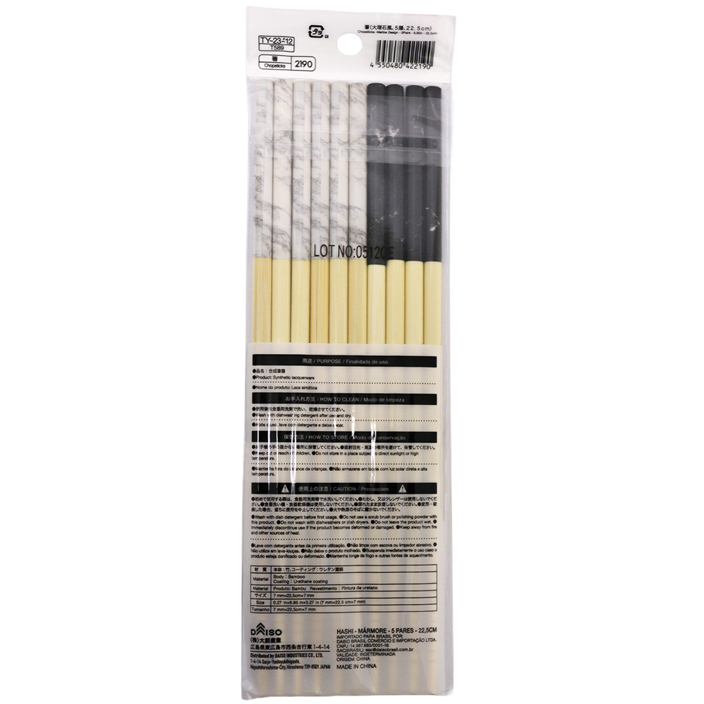 Este conjunto de 5 pares de hashis confeccionados em bambu com acabamento que remete ao mármore combina funcionalidade com estética moderna, ideal para complementar sua cozinha ou serviço de mesa. Aproveite a experiência autêntica de comer comidas orientais com um toque de elegância.