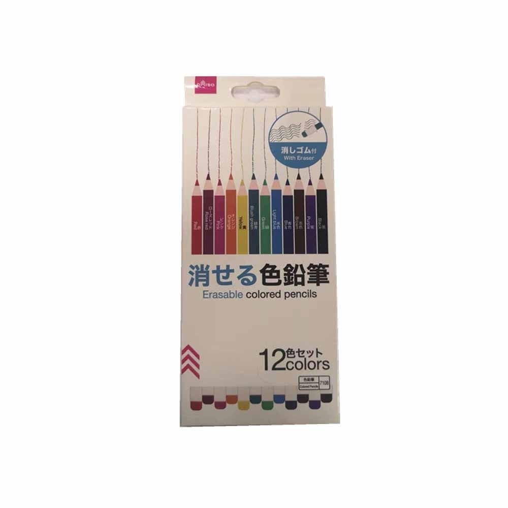 Lápis de Cor Apagável 12 Cores Daiso Com Borracha para Desenho Escolar e Artesanato Fácil de Corrigir