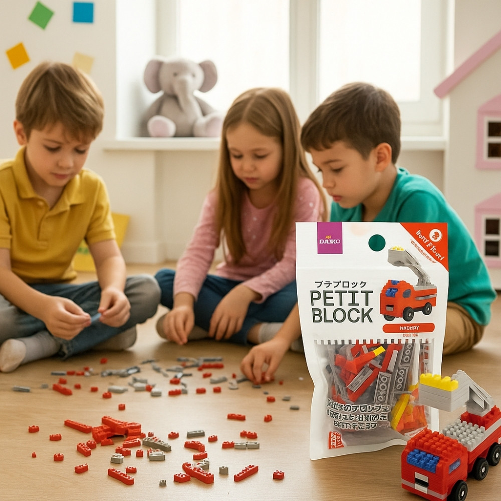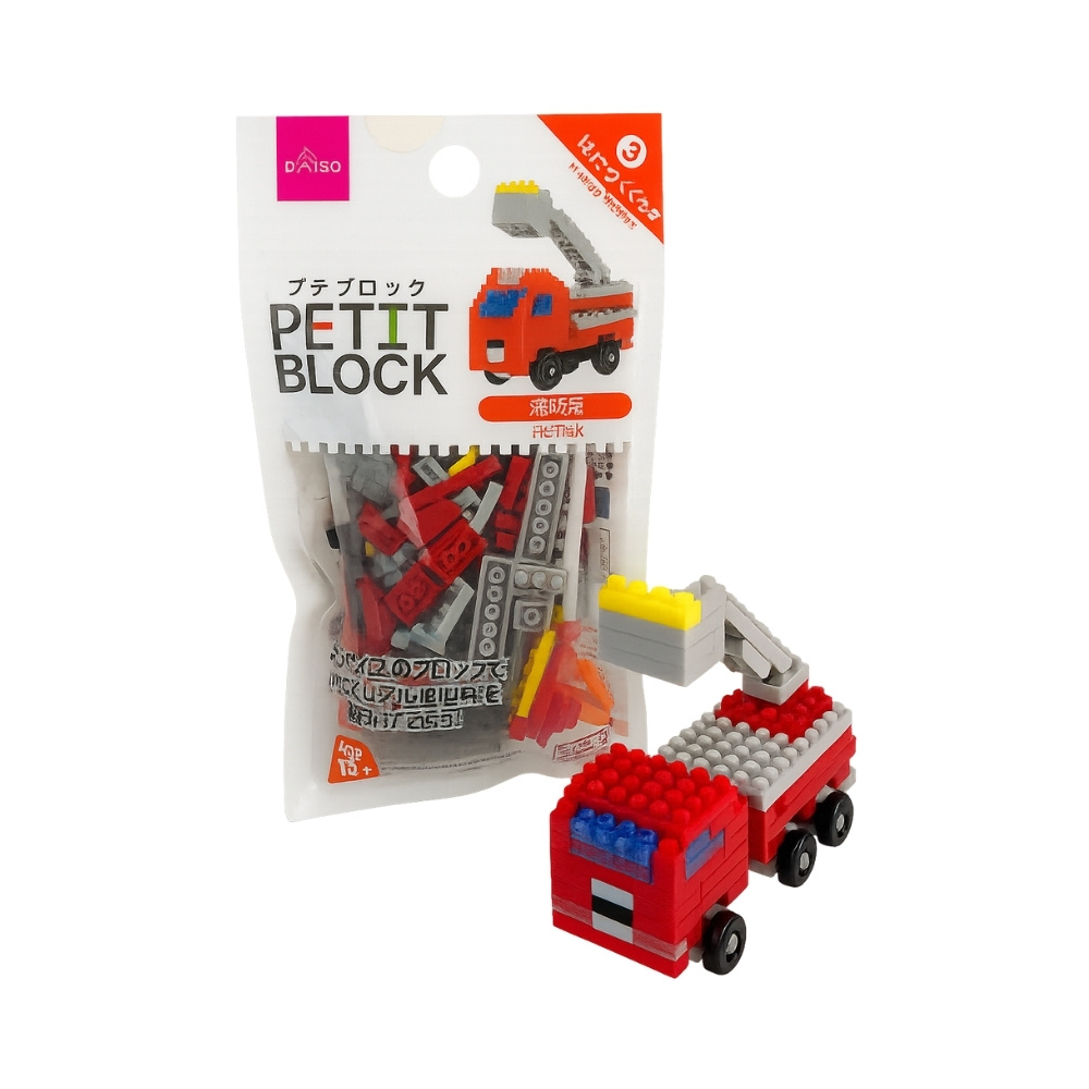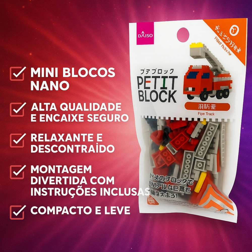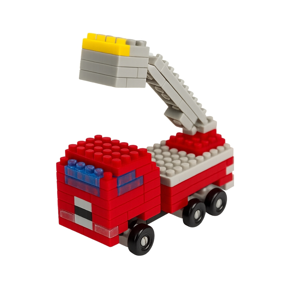 O Petit Block Fire Truck é um kit de blocos de montar em miniatura, que reproduz em detalhes um caminhão de bombeiros com escada móvel. O conjunto contém 109 peças coloridas em vermelho, cinza, preto e amarelo, oferecendo uma experiência de montagem criativa e desafiadora. O modelo finalizado é compacto, ideal para exposição em coleções de miniaturas ou decoração de ambientes.