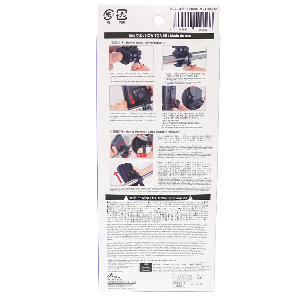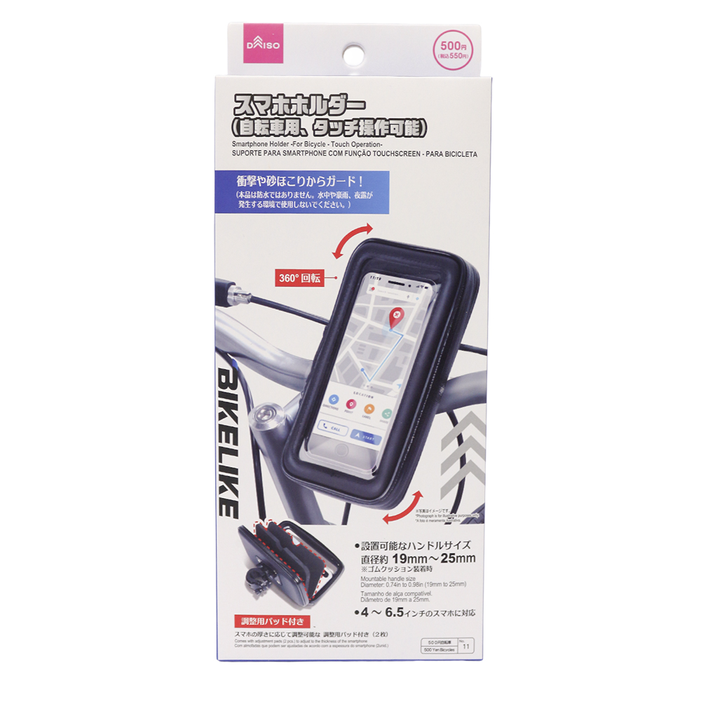 Este suporte para smartphone da Daiso foi especialmente desenvolvido para bicicletas – com função touch que permite operar a tela enquanto o aparelho está firme no guidão. Compatível com guidões de 19 mm a 25 mm de diâmetro, ele garante versatilidade e praticidade em diversos modelos de bicicletas.